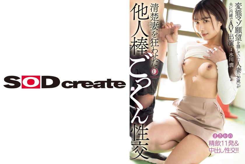 - 作品名は、『清楚妻を狂わせた他人棒ごっくん性交 変態マゾ願望を隠していた人妻(30歳)が夫に内緒でAV出演 水川潤』です。