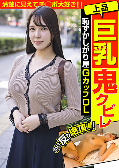 - 作品名は、『上品巨乳鬼クビレ 恥ずかしがり屋 GカップOL 清楚に見えてチ◯ポ大好き!! 美波汐里』です。